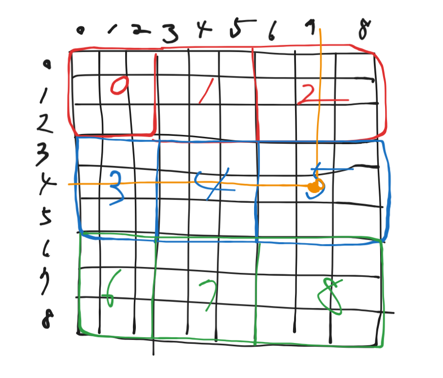 아래와 같이 i,j좌표가 속한 miniMatrix의 위치를 알 수 있다.