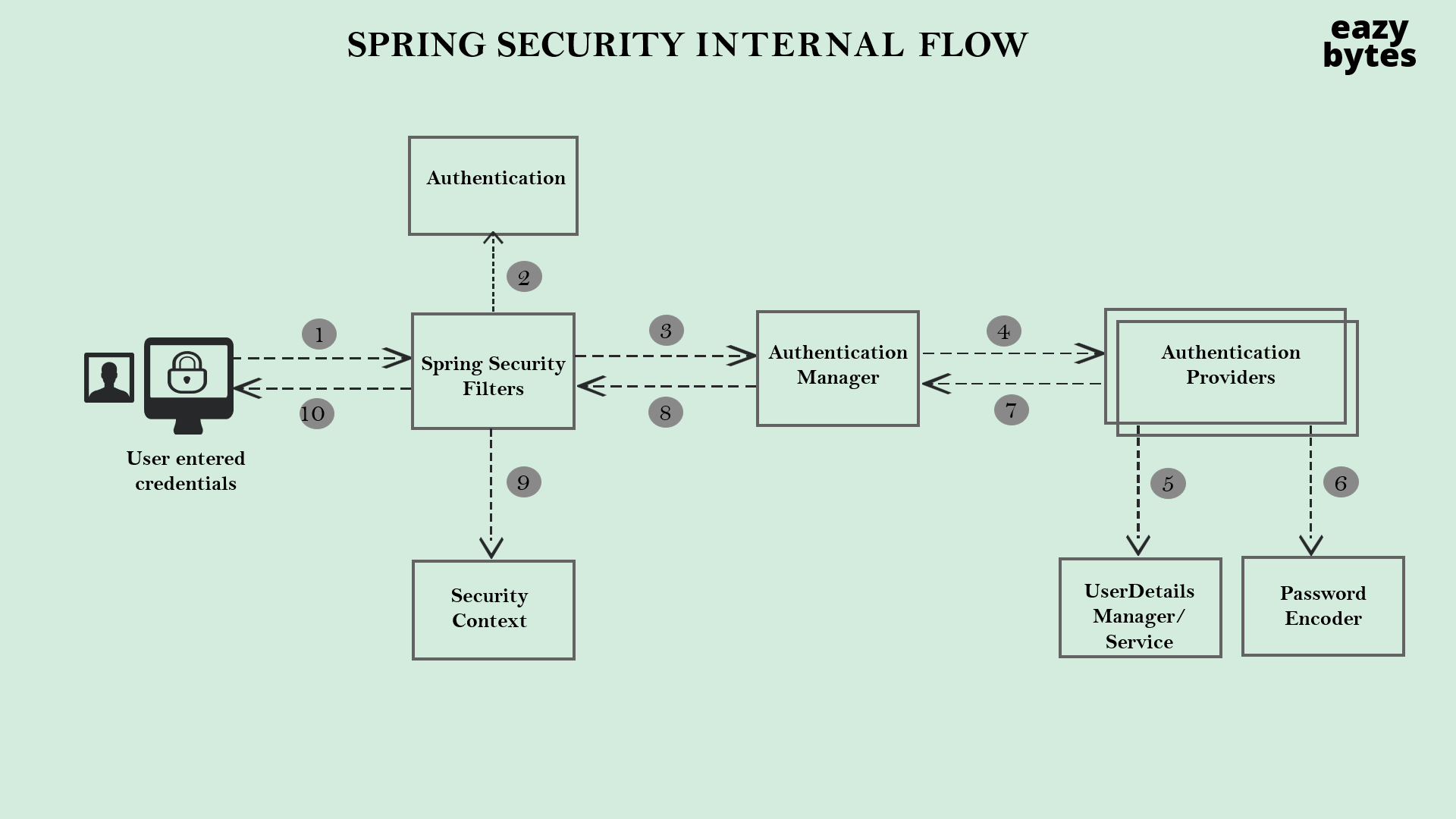 - Authentication providers를 통해 로직을 처리하고, spring security filter로 돌아온다.