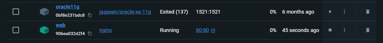 5. 실행 : docker run -d -p 80:80 —name web nginx
