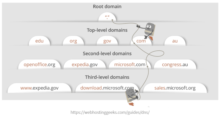 DNS recursor는 루트 네임 서버에 연결합니다. 루트 네임서버에서 3차 네임 서버까지 리다이렉트하면서 일치하는 도메인 주소를 찾고, 해당 IP주소를 DNS recursor로 반환하면, recursor는 이를 브라우저로 다시 보냅니다.